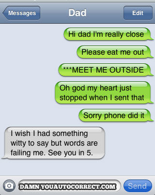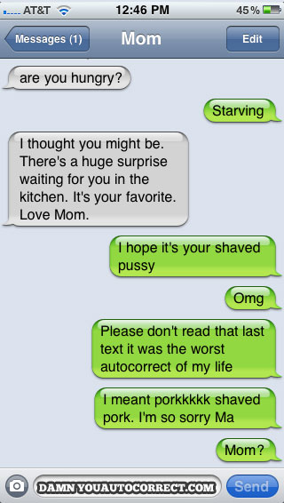 This is perhaps the most horrifying autocorrect I have ever seen. I would consider moving out of the house if I was him. And his mom didn’t even answer! Hopefully she knows what autocorrect is, but then if she does, she’ll know that her son frequently writes pussy on his phone. So either way, this kid is screwed.