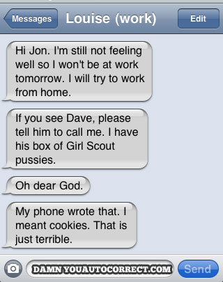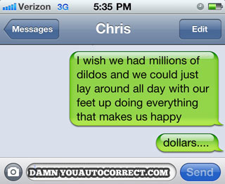 The iPhone has countless exciting and revolutionary features – sadly, autocorrect definitely isn’t one of them. You’d think after seeing an entire website devoted to autocorrect nightmares (props to damnyouautocorrect.com) Apple would get the hint and either tweak it or eliminate it altogether. Or maybe they get some sick enjoyment out of the whole thing. I’ll bet the entire staff has a designated hour every week where they all sit down and go on damnyouautocorrect.com to laugh at their customers’ misfortune.