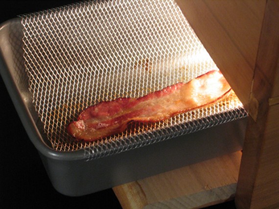 IT IS. THERE’S BACON INSIDE THE ALARM CLOCK. That’s right, thanks to our friends at SneakHype, we’ve found the greatest thing ever created by the hands of man. Now if it also produced a rolled joint out of the top, then I’d never have to leave my room ever again.