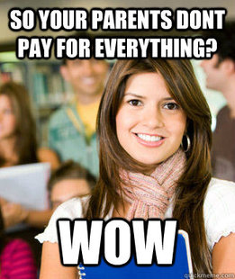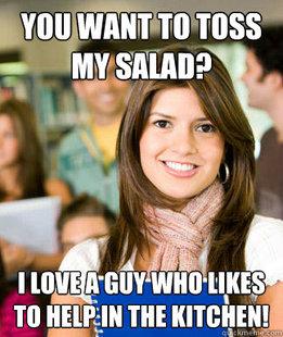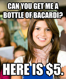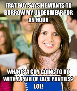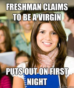 So you know that girl you meet Freshman year? She’s a virgin, she thinks drinking is bad, and that people don’t really have ulterior motives? Well, Sheltered College Freshman is that girl. She’s so delightfully oblivious that she just attracts every dude at the party. She’s the girl that guys love to take, and the girl that girls hate. So take note of the phrases here, boys. When Winter Break is over and you head back to school, try to find the girl that says anything like the Sheltered College Freshman. Once you find her, you better get on that.